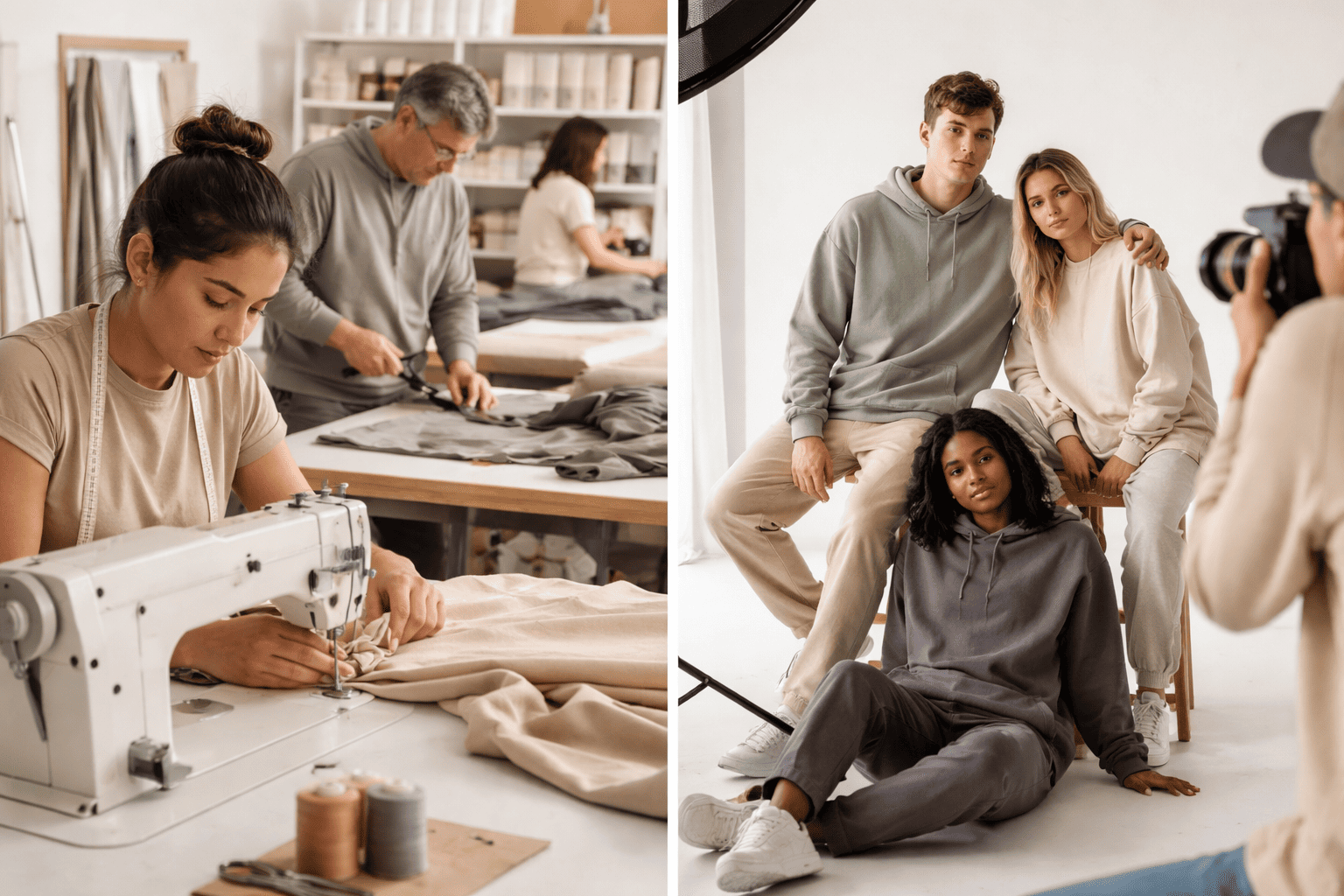 Cada colección nace desde la observación de lo cotidiano: el movimiento, el descanso, el trabajo, la calle y el hogar. Diseñamos pensando en personas reales, cuerpos reales y rutinas reales.